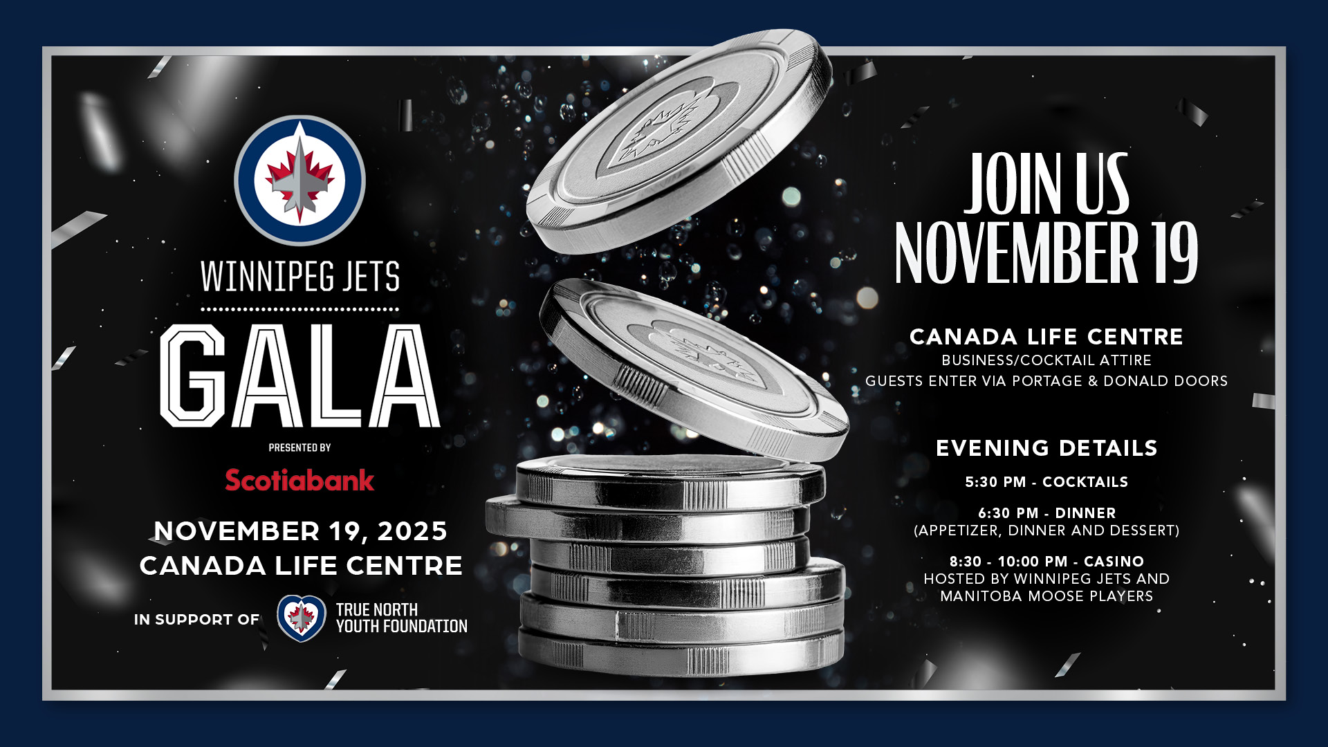 Thank you for your incredible support! The 2025-26 Winnipeg Jets Gala on Wednesday, November 19, 2025 is officially sold out.