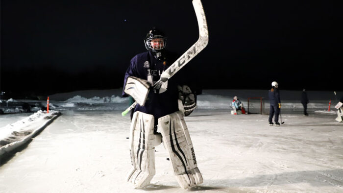 “Ever since I can remember, I’ve wanted to play goalie. I’d play mini sticks with my brothers at home, and I was always in net. When I got to do it for real on the ice, my mind was blown.”